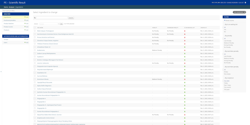 Razvoj interne aplikacije za avtomatizacijo ocenjevanja sestave kozmetičnih produktov.